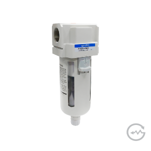 Modelo: F100 | F200 | F300 | F400 | F500; Rosca: F100: M5 | F200: 1/8”, 1/4” | F300: 3/8” | F400: 1/2”, 3/4” | F500: 1”; Pressão de Trabalho: 10 Bar; Capacidade do copo (cm³): F100: 4cm³ | F200: 15cm³ | F300: 20cm³ | F400: 45cm³ | F500: 130cm³; Temperatura de Trabalho: -5° ~ +60°C; Grau de Filtragem: F (5µm) , *FM (0,1µm) , *FD (0,01µm); Material do copo: F100/F200: Policarbonato | F300/F400/F500: Policarbonato + Proteção; Vazão (L/min): F100: 90L/min | F200: 500L/min | F300: 2000L/min | F400: 4000L/min | F500: 5000L/min